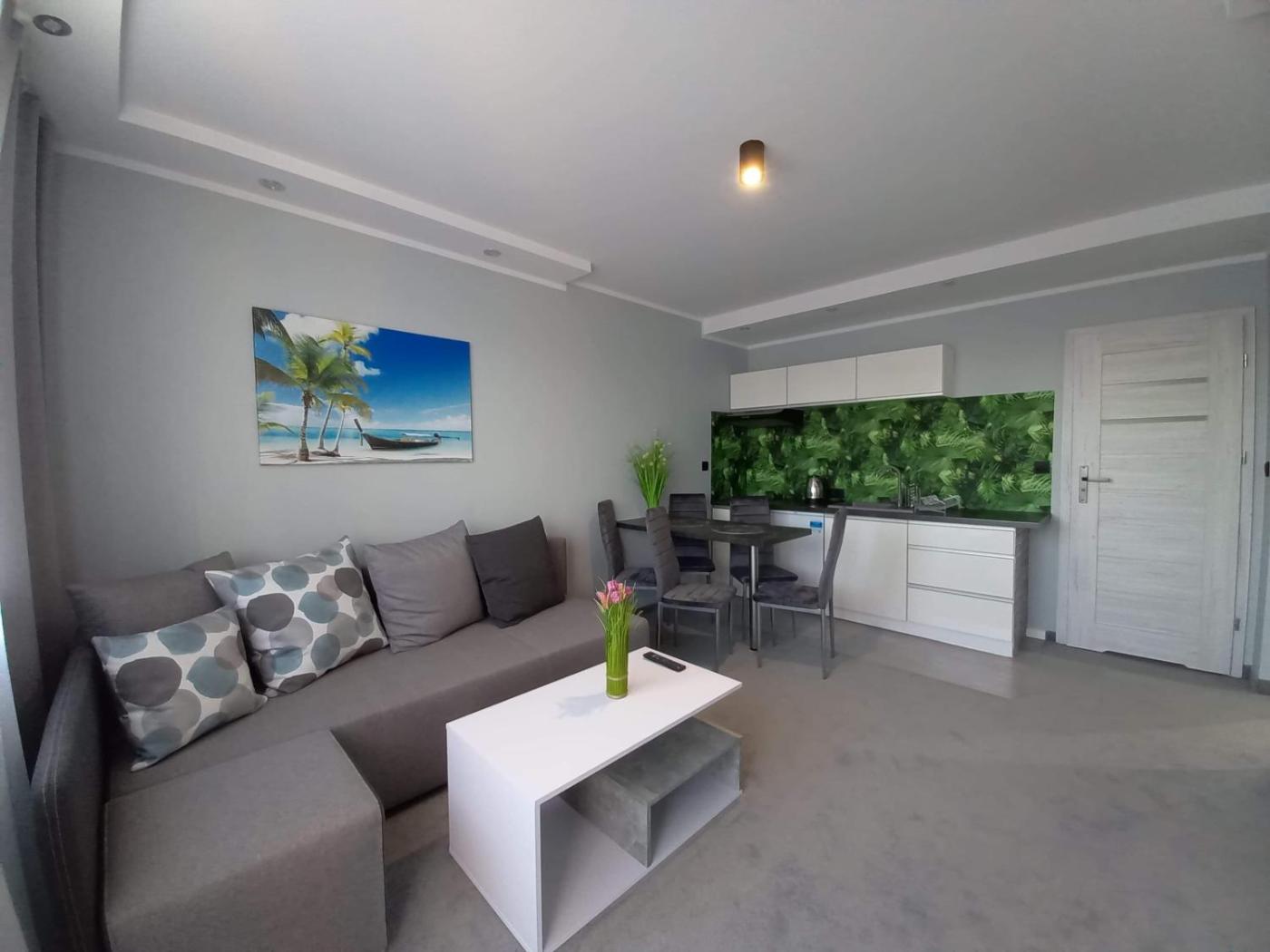 Apartament Rodzinny z 1 sypialnią. Featuring a private entrance, this apartment is comprised of 1 living room, 1 separate bedroom and 1 bathroom with a walk-in shower. Guests will find a stovetop, a refrigerator, kitchenware and an electric kettle in the well-fitted kitchen. The apartment also has a barbecue. This wheelchair accessible apartment features soundproof walls, a seating area with a flat-screen TV and a roll-in shower. The unit offers 3 beds. Apartament - 5 osobowy.