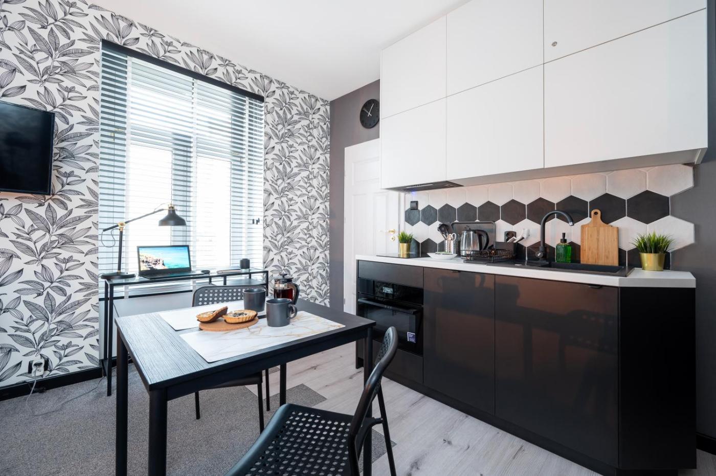 Apartament z 1 sypialnią. Featuring a private entrance, this air-conditioned apartment comprises a kitchenette, 1 bedroom and 1 bathroom with a shower and a hairdryer. In the well-equipped kitchenette, guests will find a stovetop, a refrigerator, a dishwasher and kitchenware. The apartment provides a seating area, a dining area, a wardrobe, an electric kettle, as well as a flat-screen TV with streaming services. The unit offers 1 bed. Apartament - 2 osobowy. Powierzchnia pokoju ok.: 26 mkw.